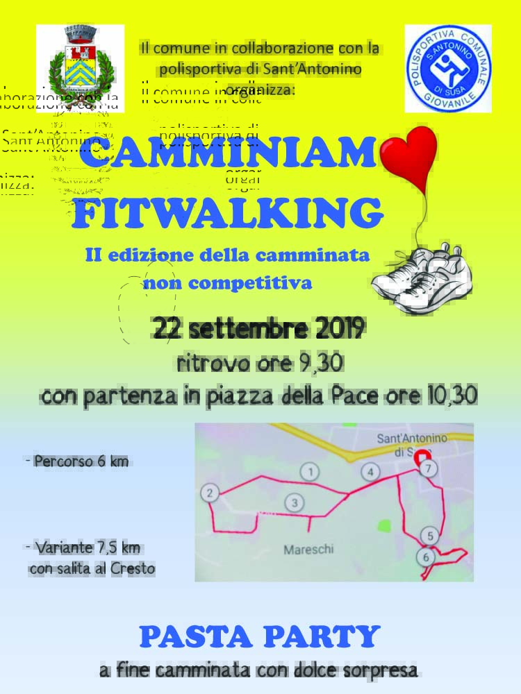 Si chiama “Camminiamo Fitwalking” la seconda edizione della camminata non competitiva organizzata dall'amministrazione comunale in collaborazione con la Polisportiva, che si svolge domenica 22 settembre con ritrovo alle 9,30 in piazza della Pace e partenza alle 10,30.
