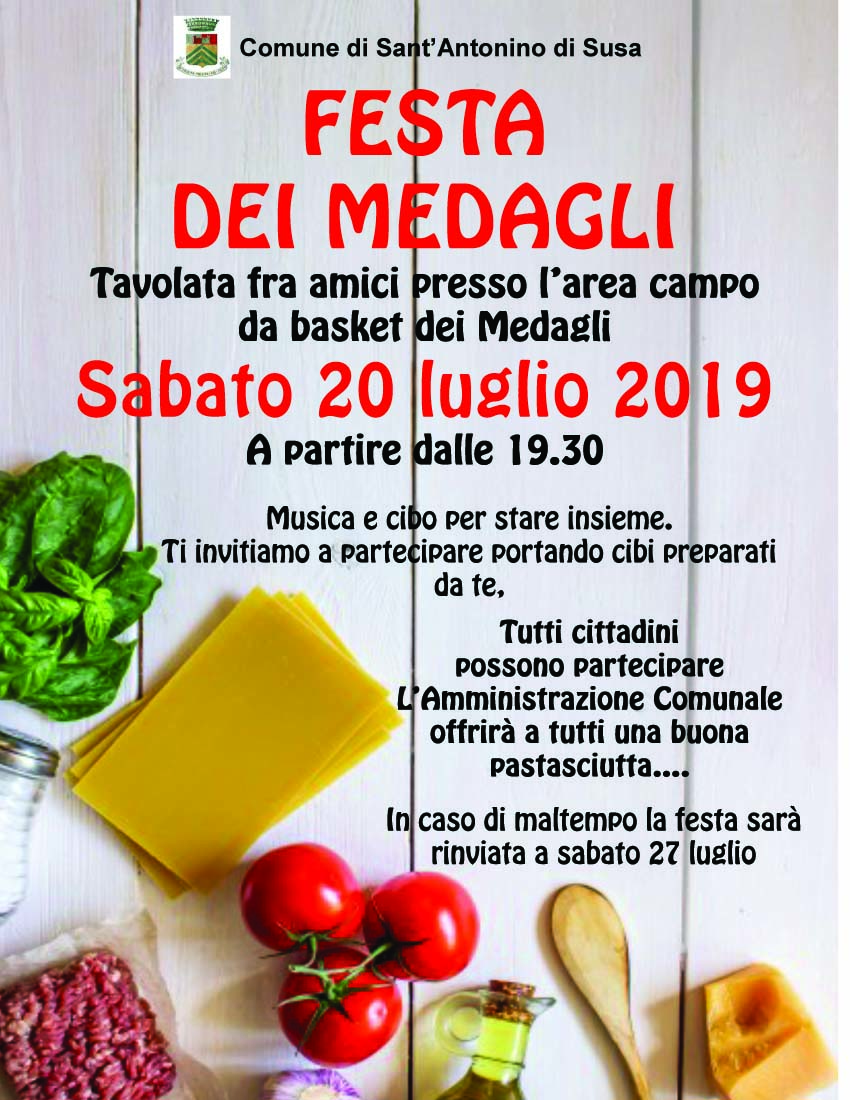 Festa dei Medagli, sabato 20 luglio a partire dalle 19,30, nell'area del campo da basket, organizzata dall'amministrazione comunale, che invita tutti i cittadini a partecipare, portando cibi preparati da loro stessi, vino e bevande. L'amministrazione offrirà a tutti, adulti e bambini, una buona pastasciutta. Oltre al cibo, non mancherà la musica. Il caso di maltempo la festa sarà rinviata al 27 luglio.