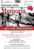 Giornata della Memoria - 26 gennaio 2014 - ore 17,00 - sala del Consiglio - via Torino 95