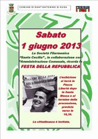 La società Filarmonica S. Cecilia, in collaborazione con l'Amministrazione Comunale, organizza, in occasione della Festa della Repubblica 2 giugno, un'esibizione musicale, in Piazza Libertà, subito dopo la Messa e la processione, quindi verso le ore 19,30.