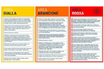 EMERGENZA CORONAVIRUS -SCHEMA RESTRIZIONI PER LE ZONE GIALLE, ARANCIONI E ROSSE