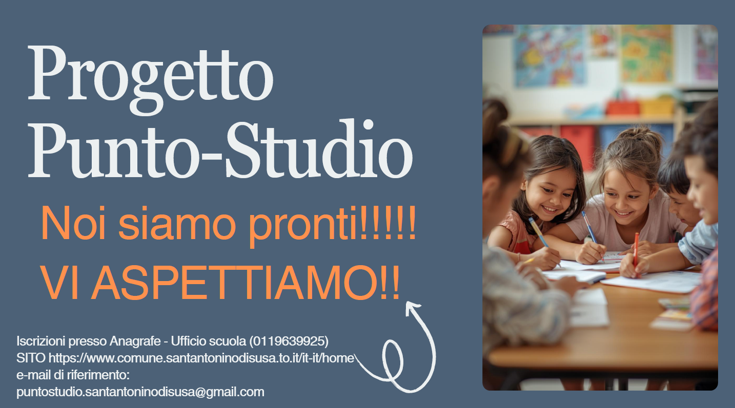 Da mercoledì 25 febbraio prende avvio il progetto Punto-Studio, promosso dal Comune di Sant’Antonino di Susa in collaborazione con l’Istituto Comprensivo Centopassi, con l’obiettivo di offrire uno spazio gratuito di supporto allo studio, inclusione e crescita educativa per gli studenti del territorio.