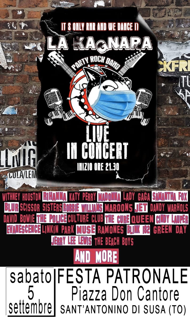ore 21,30 - piazza Don Cantore - La Kagnara Live in Concert - Musiche dei Police, Queen, Cindy Lauper e molti altri.