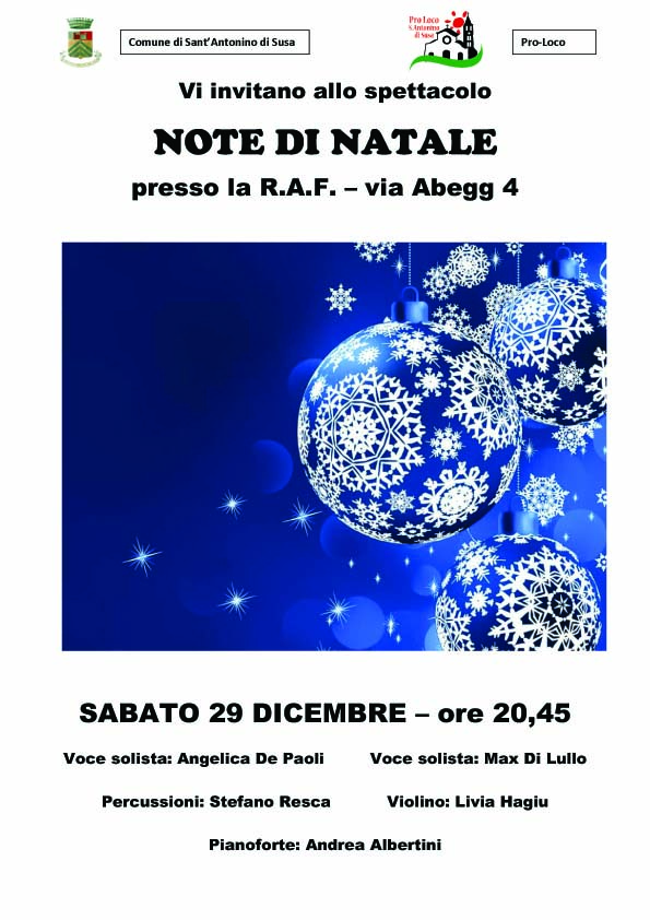 Comune e Pro loco organizzano, sabato 29 dicembre alle 20,45 nei locali della Raf, un concerto natalizio.