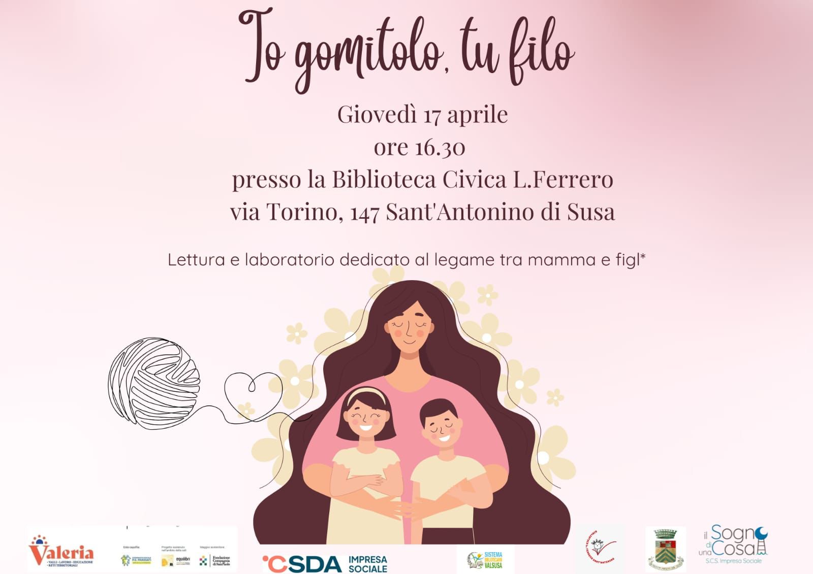 Giovedì 17 aprile alle ore 16,30 presso la Biblioteca in via Torino 147 Lettura e Laboratorio dedicato al legame tra mamma e figl*.